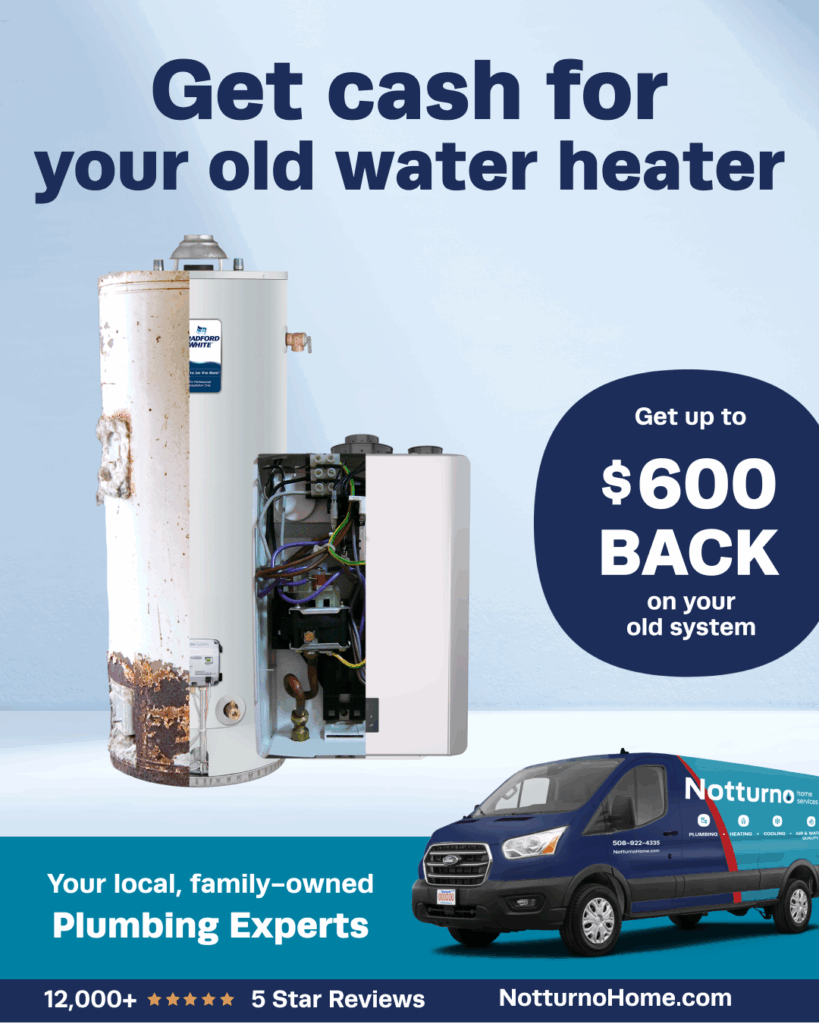 *Available to residential customers in Massachusetts only. To qualify, customer must purchase and install a new Notturno-supplied hot water heater. Buy-back credit is applied toward the new system only, has no cash value, and is determined solely by Notturno after inspection of the existing water heater. Final credit determinations are not negotiable. Old tank must be surrendered at installation; unsafe, leaking, or non-operational units may receive reduced or no credit. Limit one credit per household. Offer may not be combined with other discounts or promotions. Coupon or code must be presented during the initial consultation. Offer subject to change without notice. New system purchase required. Expires March 31, 2026. Coupon code: NHSWHBUYBACK.